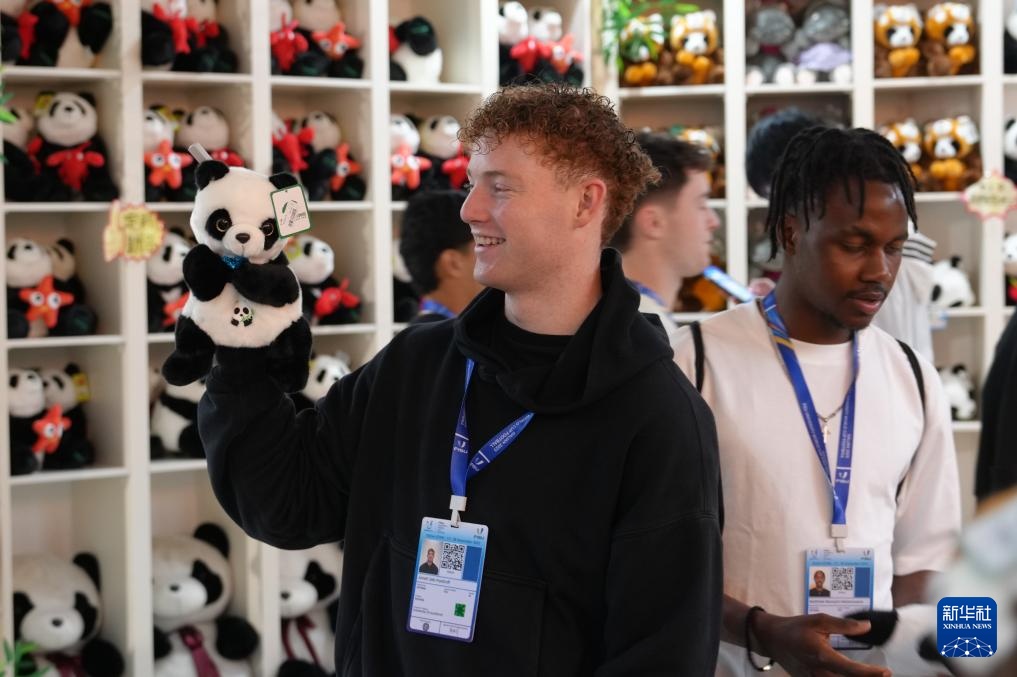 9月23日,一名球员在大连森林动物园选购大熊猫玩偶。新华社记者 郑焕松 摄