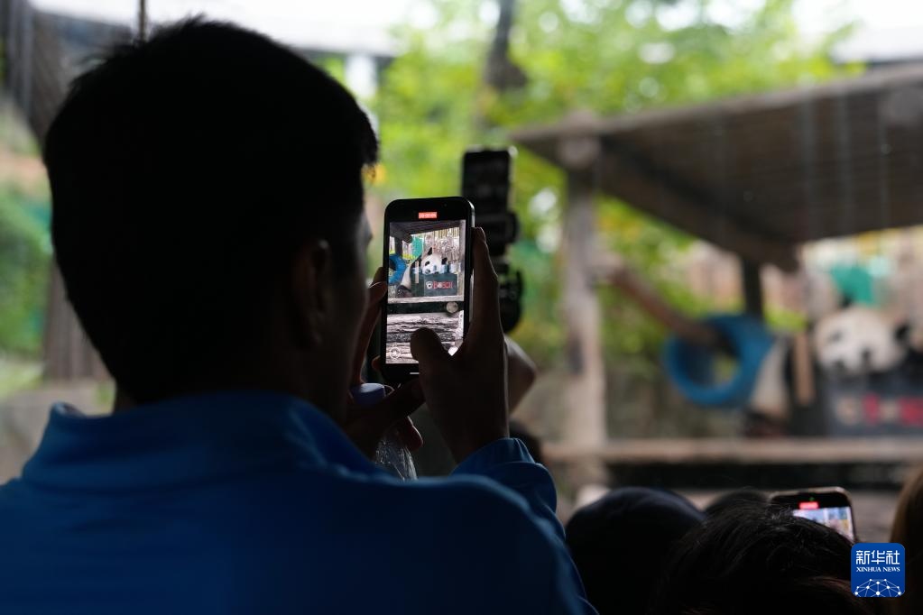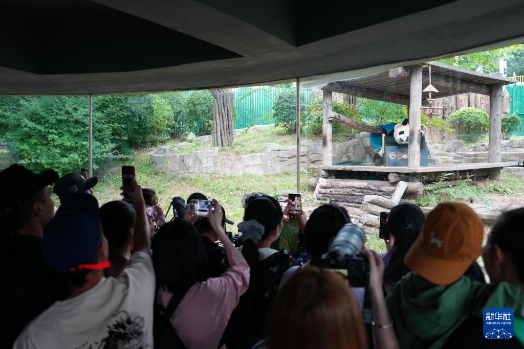 9月23日,球员、教练员、裁判员等在大连森林动物园与其他游客一同观看大熊猫。新华社记者 郑焕松 摄
